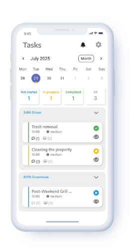 You only pay $2.99 per property. Enjoy unlimited tasks, real-time notifications, a powerful mobile app, and seamless calendar sync with platforms like Airbnb, Booking.com, and VRBO.